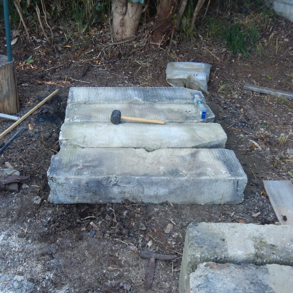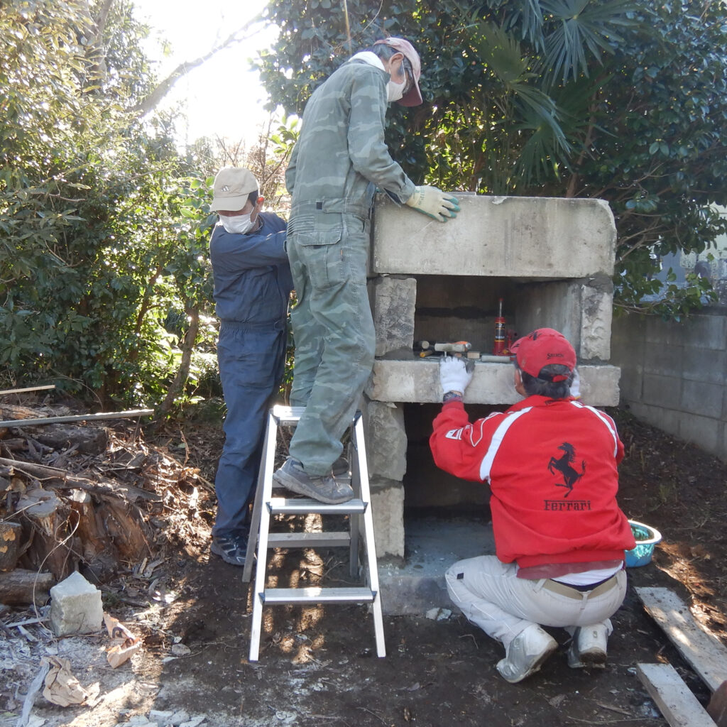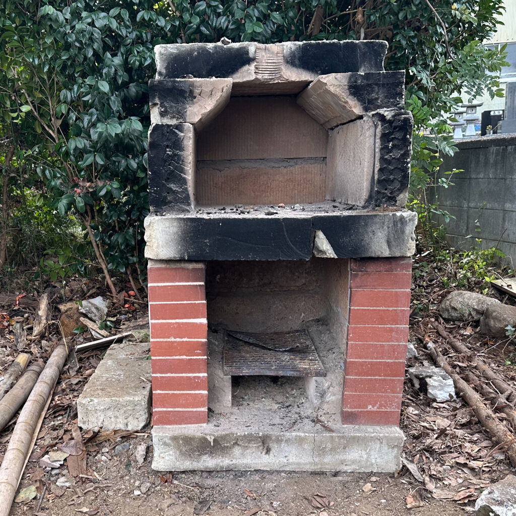 これだけ薪があるんだから薪ストーブ熾火でつくるピザも良いけれど、ピザ窯だよね!ということで作ることにした。材料は壊した石塀の大谷石。
