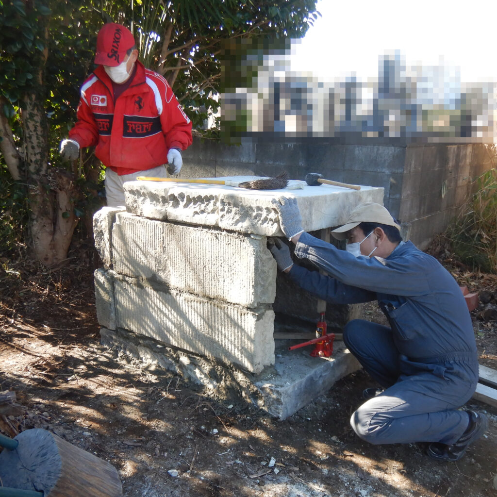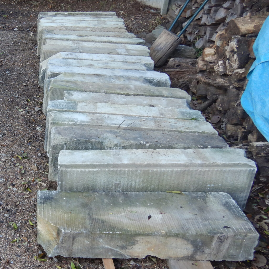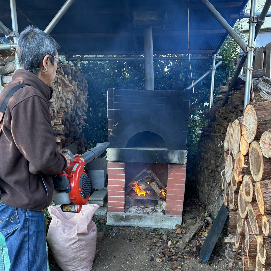 これだけ薪があるんだから薪ストーブ熾火でつくるピザも良いけれど、ピザ窯だよね!ということで作ることにした。材料は壊した石塀の大谷石。