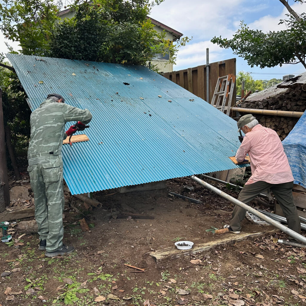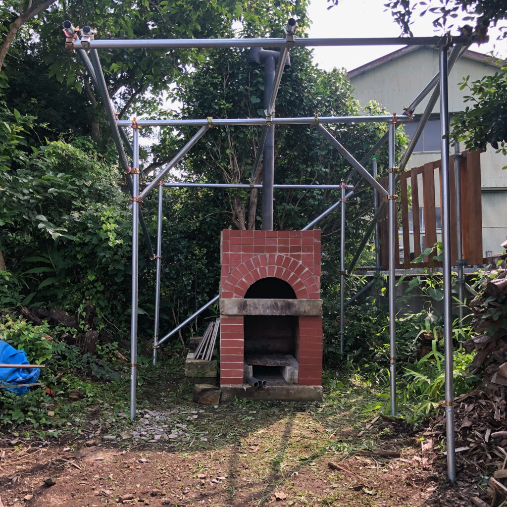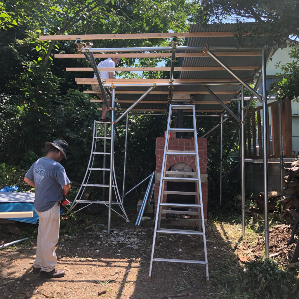 2021/07/17 やはり屋根が必要だよねと屋根掛けをした。これで雨天でも安全にイベントができるようになった。