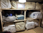 - 布団袋棚の作成旧拠点から運び込んだ布団袋の収納先がないので、廊下に仮置きしていた。何とかしなくてはと、北座敷の片隅に2x4材で棚を作って収納した。