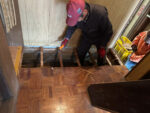 - 台所床修繕勢いに乗って今日は台所の床直し。症状と修理要領もわかってきたので一気呵成に進む。 床にあるものを全て片付けたが、冷蔵庫だけは残すことに。作業ごとに電源が入ったまま移動させる方式で床壊しが始まった。毎回そうだが、今日も […]