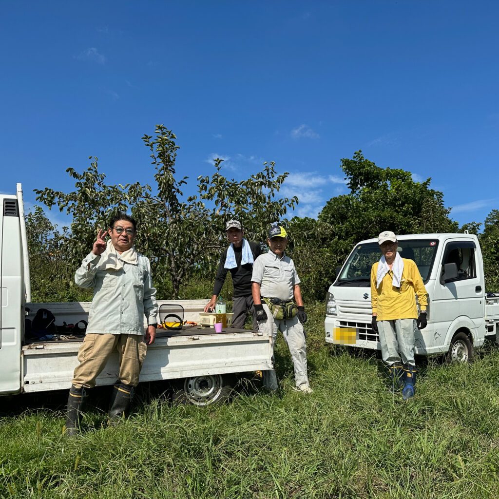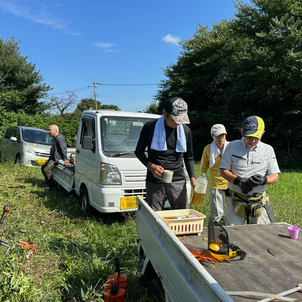 久々のフルエントリー、その他参加者の機器を持参いただき、7人で草刈り隊を結成。いざ、柿畑へ!