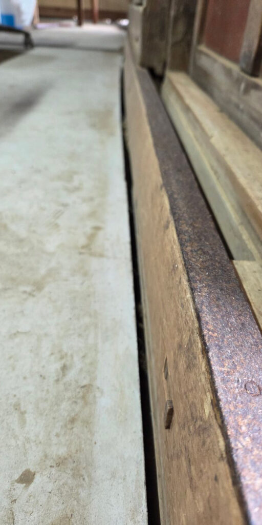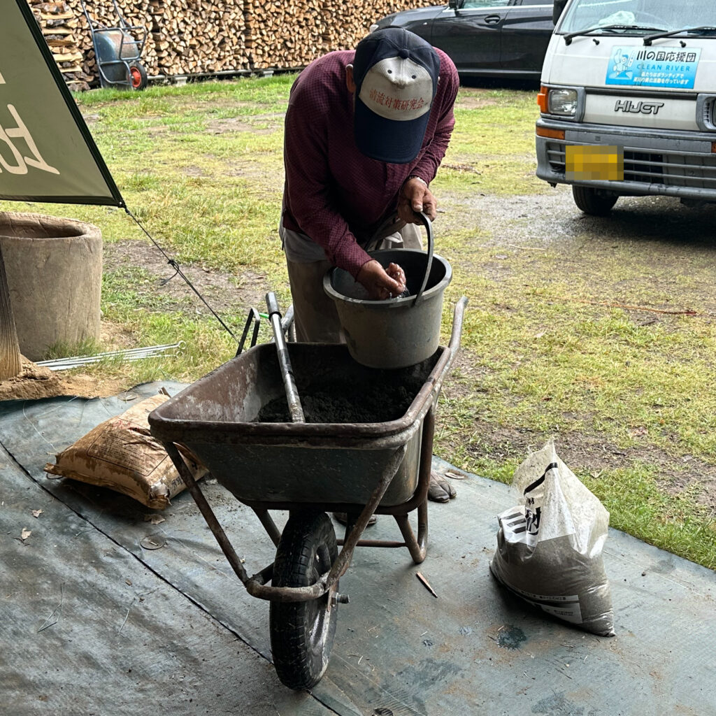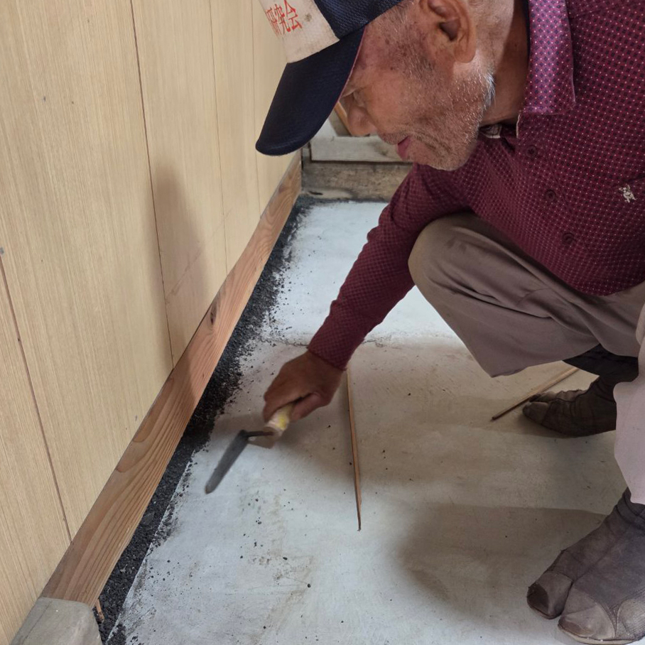 コンクリート打設玄関土間の仕上げ作業。仮枠をとってモルタル仕上げを行った。