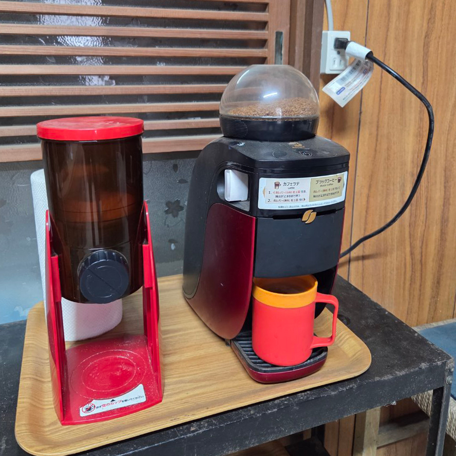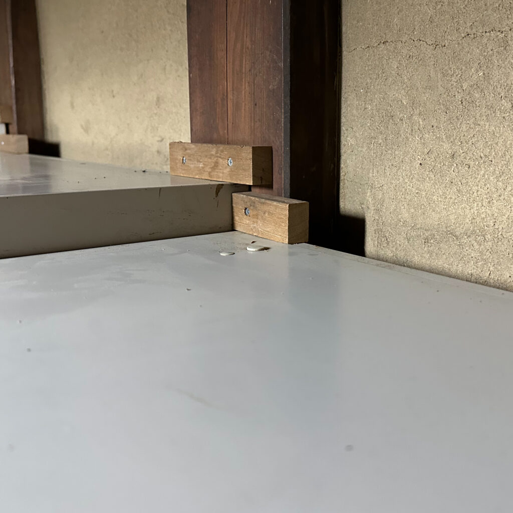 ウォールキャビネットの転倒防止駒を上部に設置。 久しぶりの雨で気温も下がり「コーヒー」が欲しくなり、この拠点で初めてコーヒーサーバーが稼働し出した。