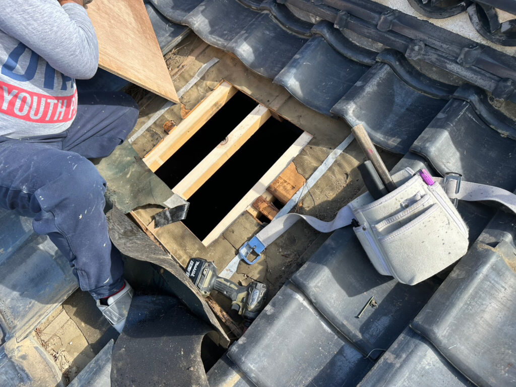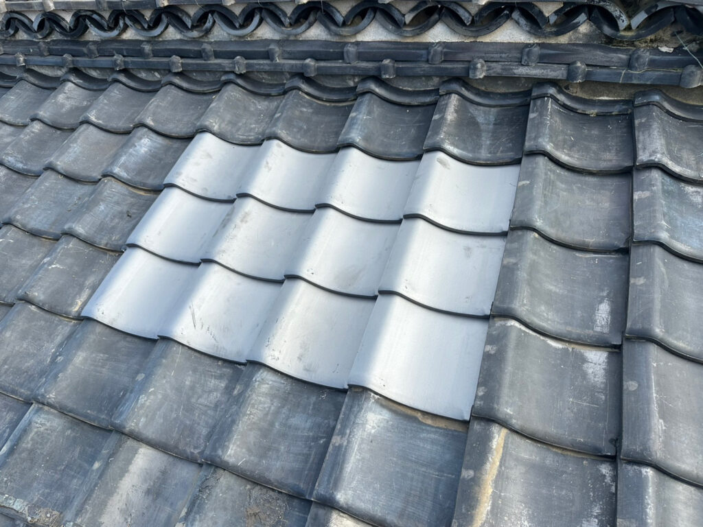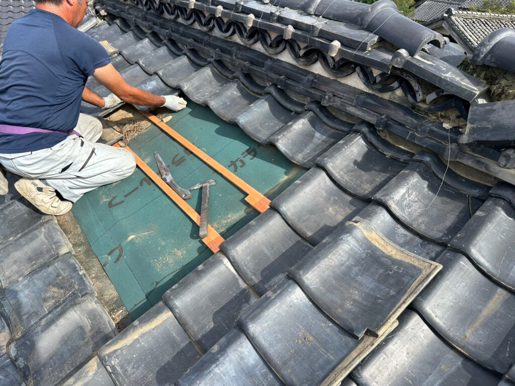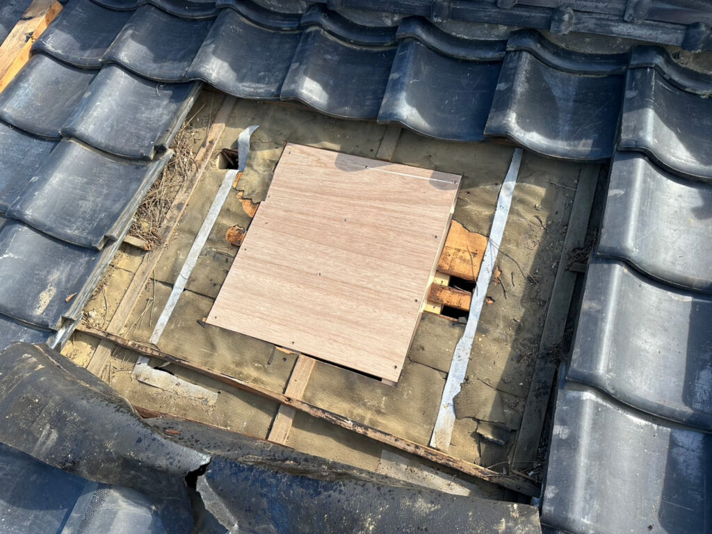 雨仕舞いは完璧に行われた。規格に合うストック瓦がなく、急遽新規調達となった。