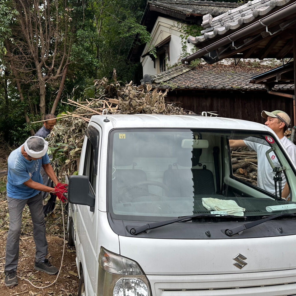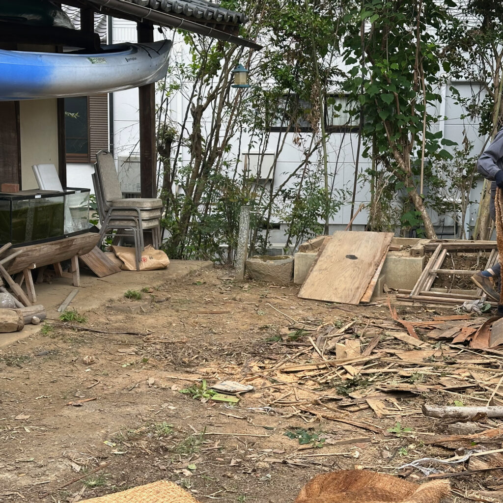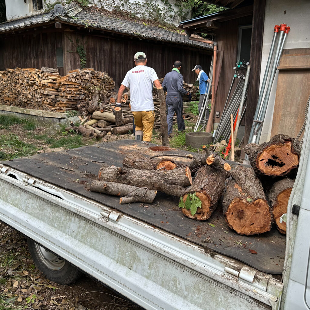 そのほか薪棚後ろの生垣?の剪定と伐採。それに表側のオーバーハング部剪定などいろいろな作業が進む。
