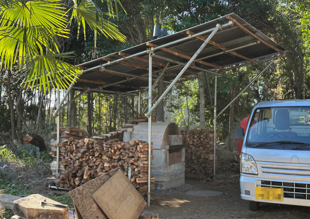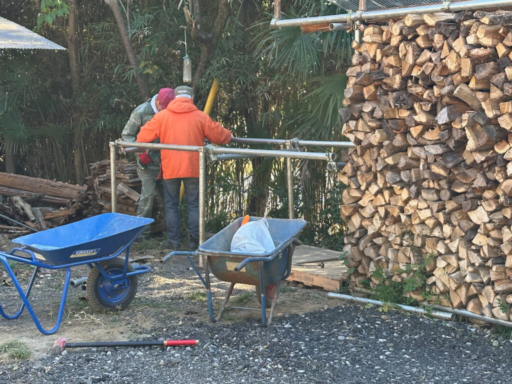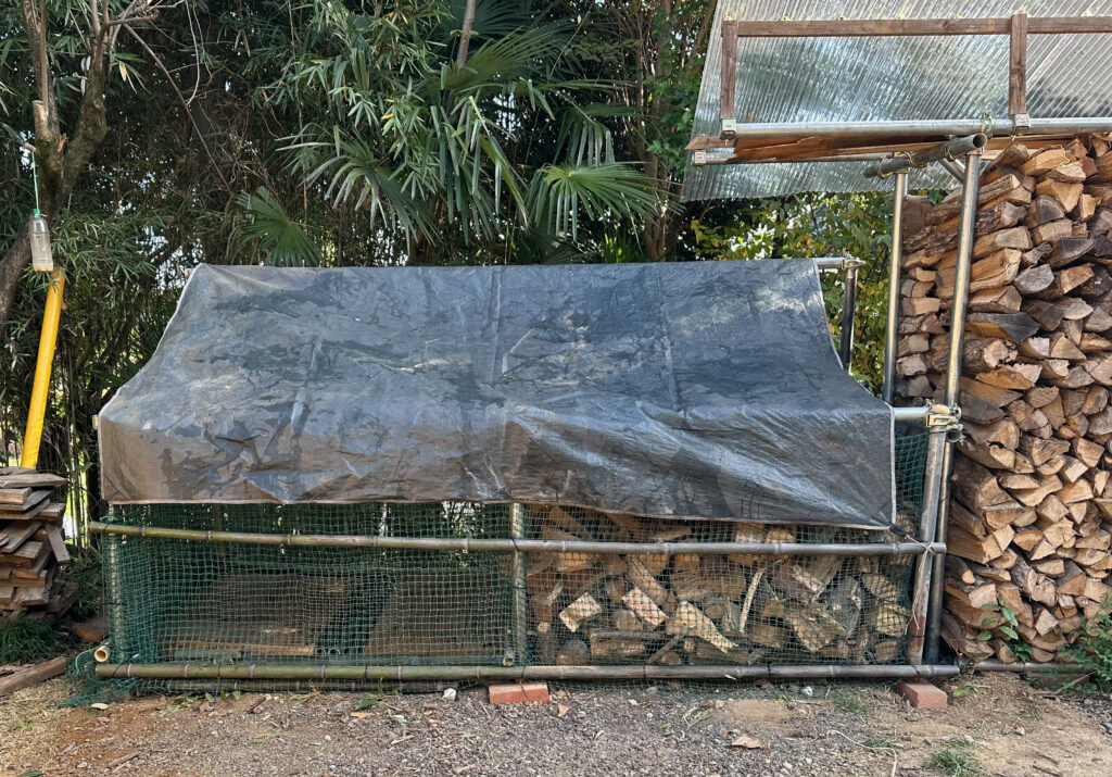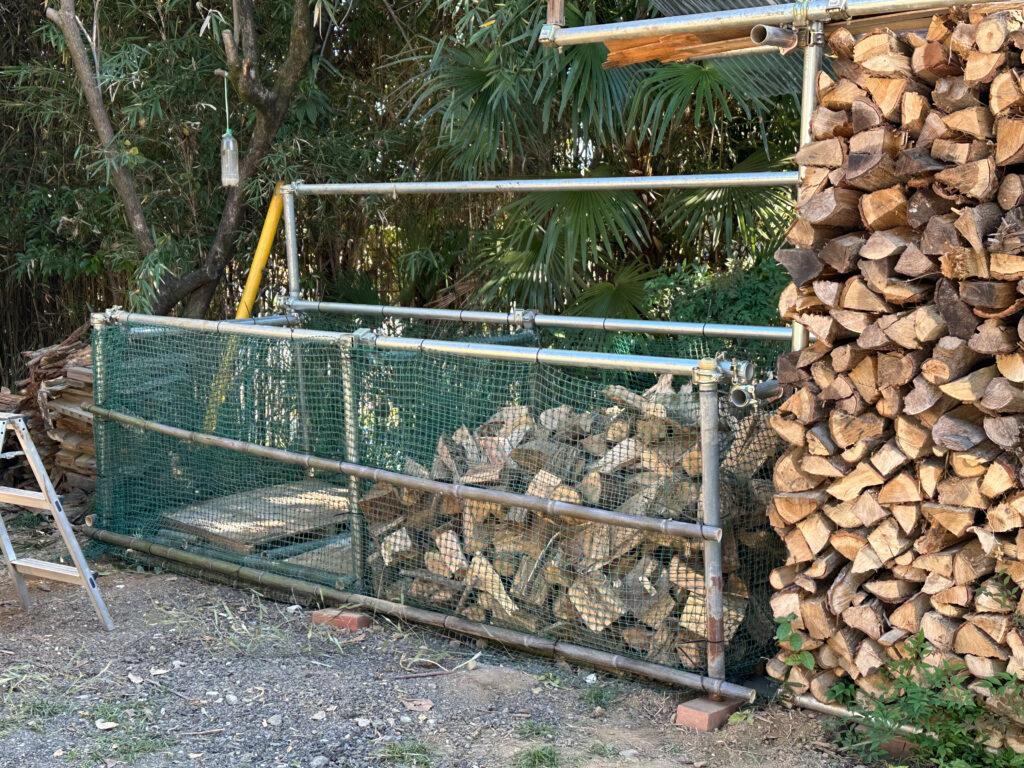 目隠しにもなり、風除けにもなる薪が積み上がった。