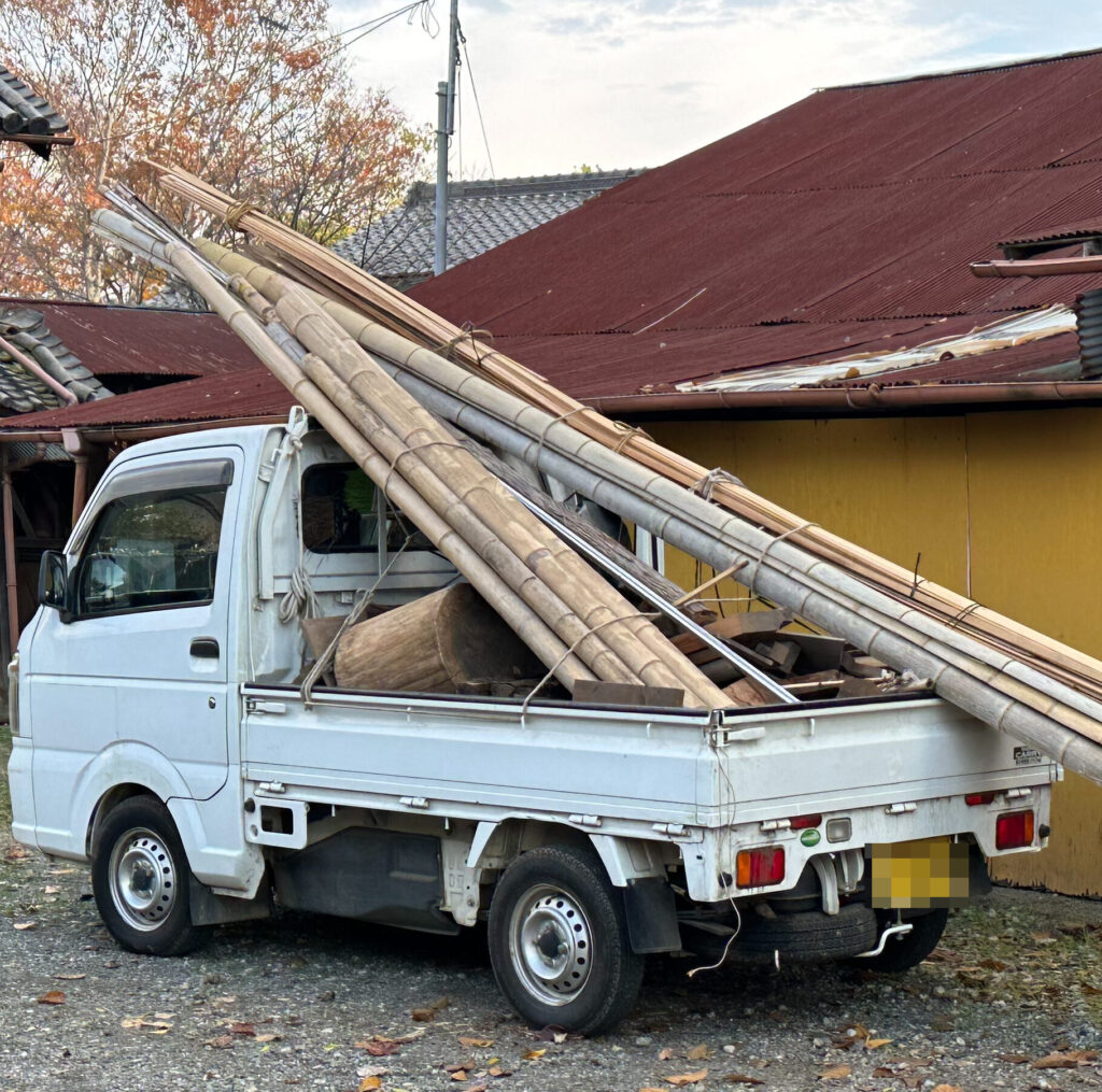 長尺物を中心に運び出した。カヌーストロングバック(型台)は流石にギリギリセーフの状態か。余って保管してあるストリップ材(カヌー船体材)も慎重に梱包。林間学校で使われた流しそうめん竹も搬出し処分予定。
