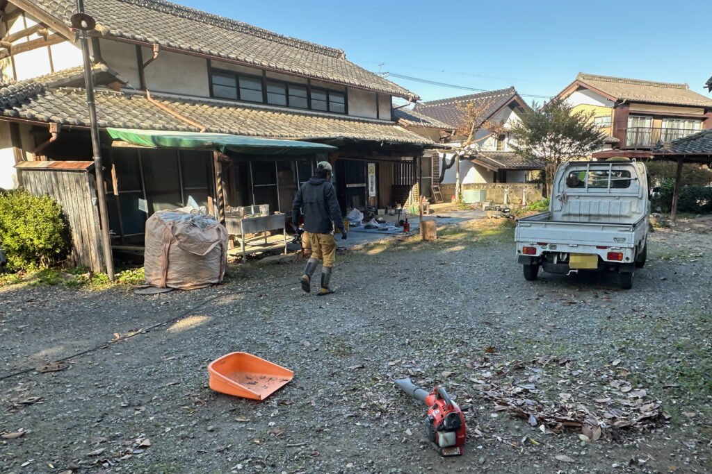 テント屋根も分解撤去。いつもの秋は毎日のように白木蓮の大きな葉っぱをかき集めていたが、今回は完全に落ちた庭一面の枯葉の山をフレコンバッグひとつにまとめた。