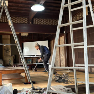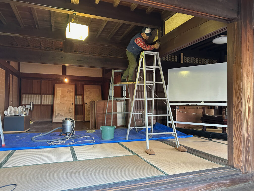 高所での煤払いと拭き掃除、結構面倒だが作業後は黒光の趣。