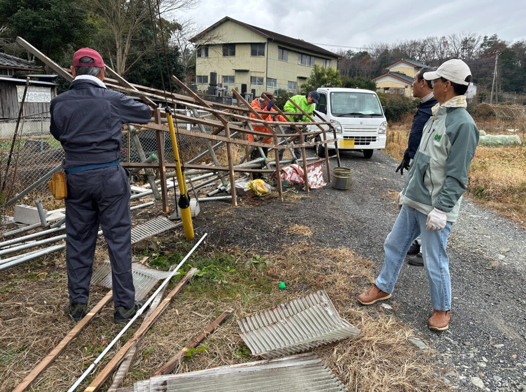 薪棚撤去 2025年12月21日 最終更新日時 : 2025年12月21日 YSK 比企自然学校里山センター入り口のシンボリックな薪棚の薪が、今日の薪配達でついに全部無くなったので薪棚撤去作業を行なった。