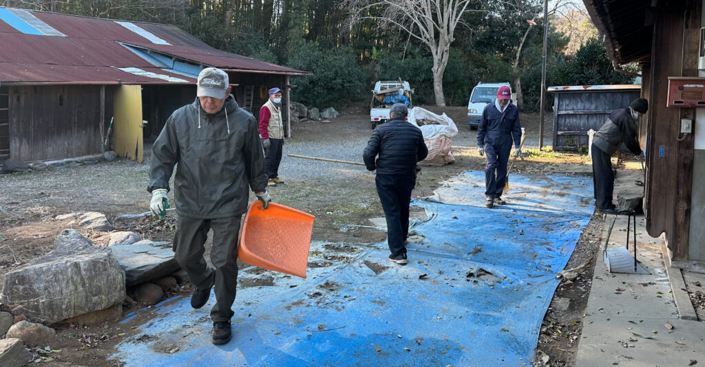 一月の三連休初日、寒いが天気は良い。6人の会員で清掃作業を行った。搬出物と廃棄物含め、軽トラック7台分片付けた。落ち葉はあるが、塵ひとつない状態になった。