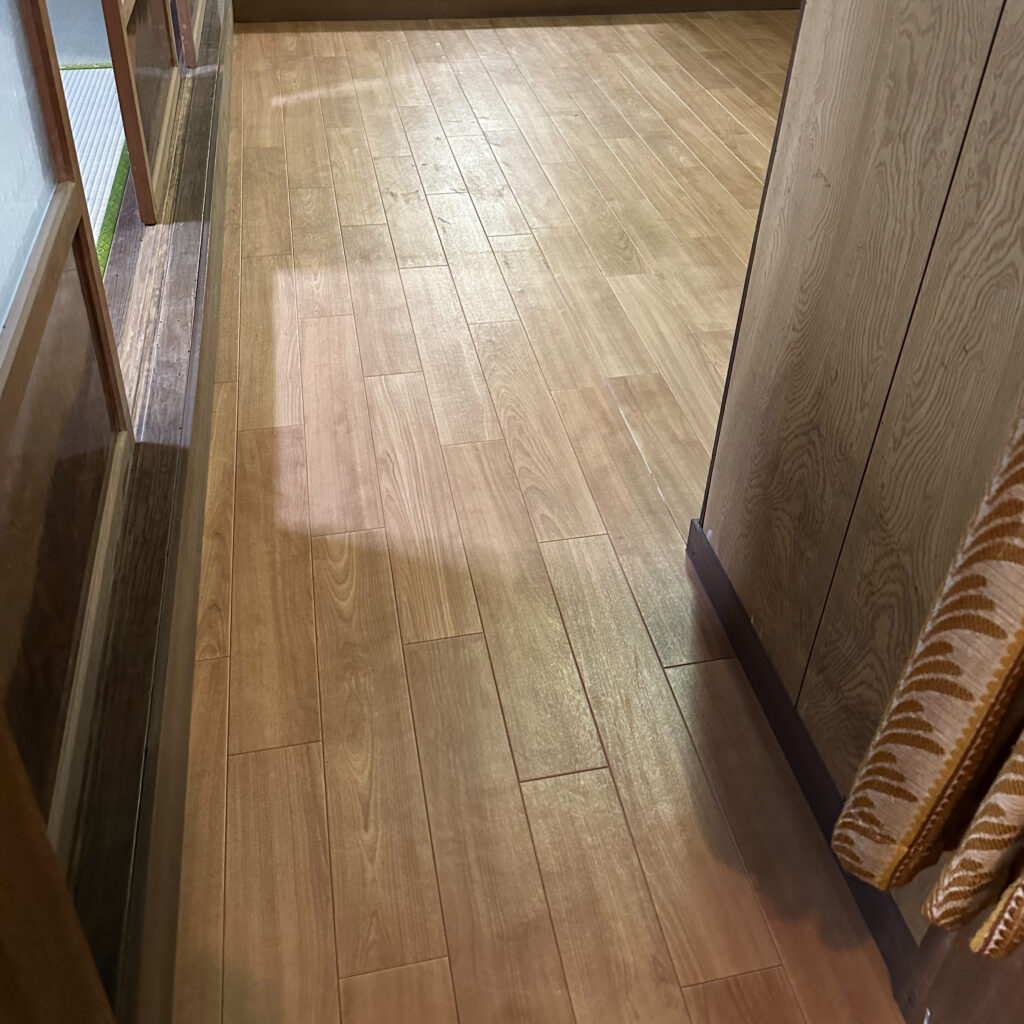 床修繕作業が終わったので、機材仮置きの正規位置への収納と養生シートの片付け、その後清掃作業を行った。やっとすっきりした景観となった。そして広さが体感できるようになってきた。