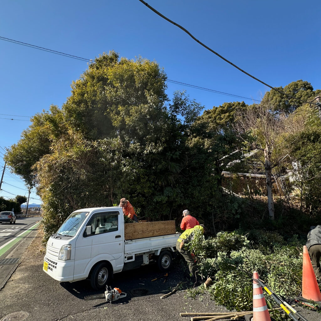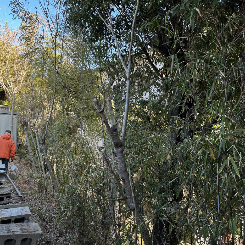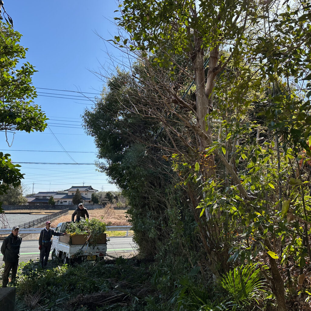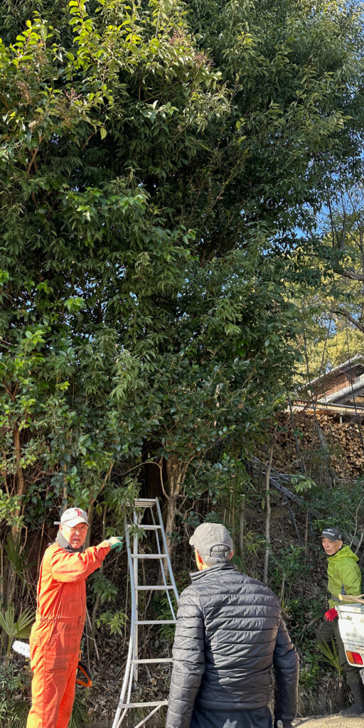 剪定?よりも伐採の様相の作業となった。会員8名参加の総力戦!