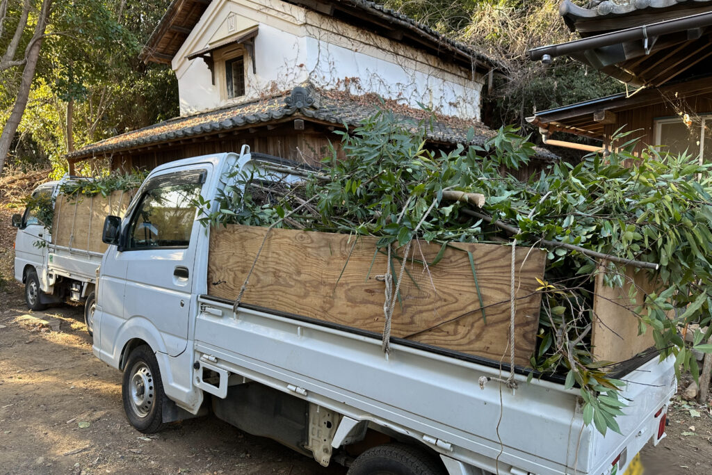 今日の成果の伐採枝はざっくり軽トラック4台分、週日後処理が待っている。