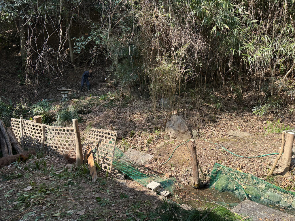 障子張り・北庭整備 2026年2月23日 最終更新日時 : 2026年2月23日 YSK 障子張り 北庭(山水庭園) 石灯籠が見えてきた 石組みの築山が見えてきた。それにしてもすごいツタ。 ツタとシノダケを取り除くと、往時を偲ばせる庭の風景が・・・