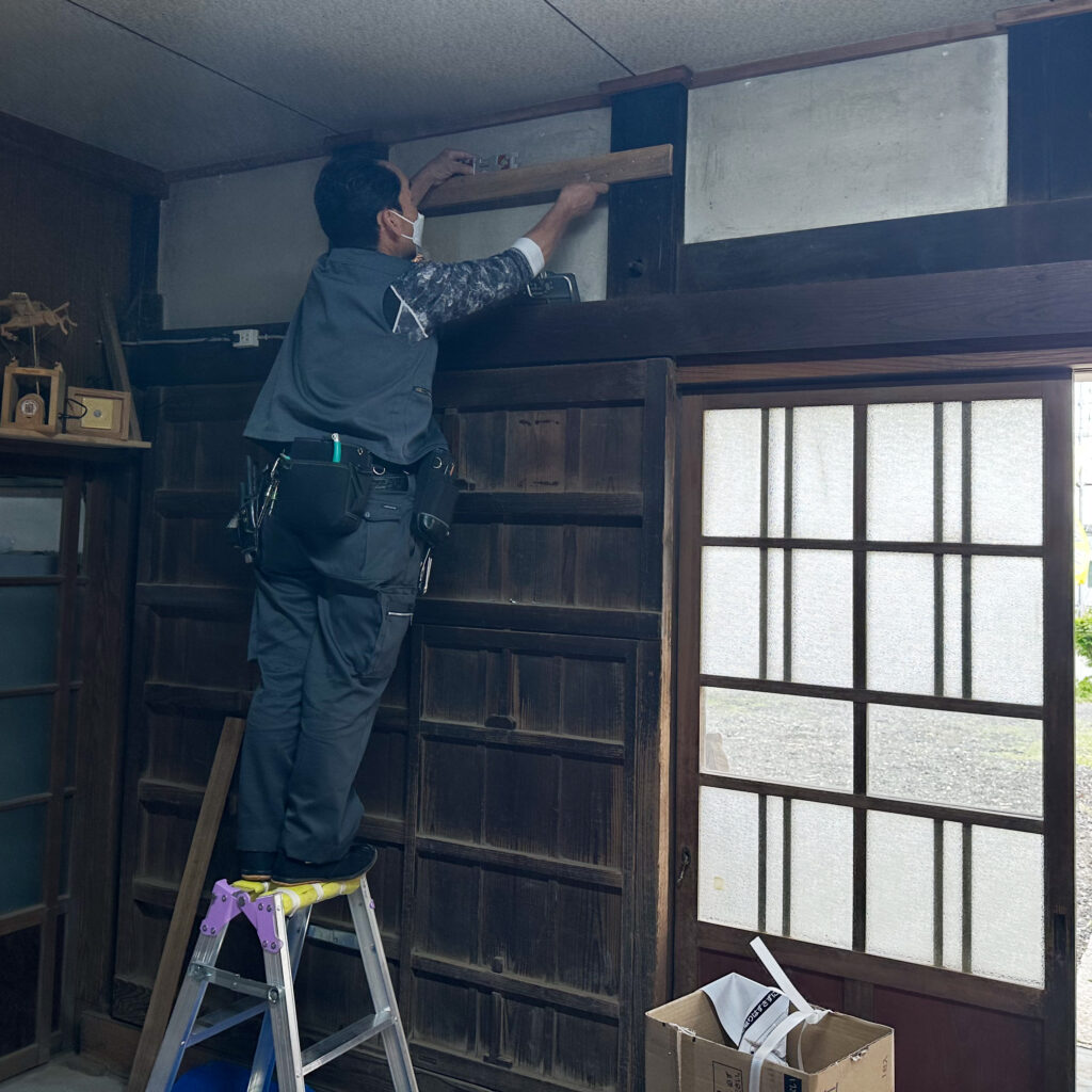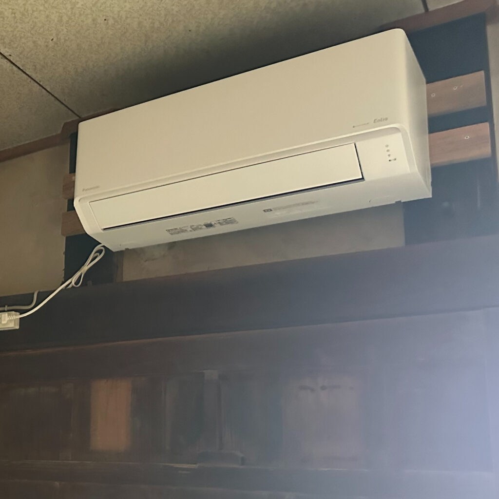 床板下地材清掃とエアコン工事