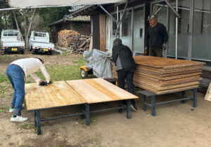 二階床用下地材の乾拭き、雑巾掛けを行い、綺麗にしてこれからの作業の準備を行なった。開放空間の屋根の下にあったものなので、綺麗に見えても雑巾で拭き取ると結構汚れが取れた。 扇風機では乗り越えられない夏を前にして安価に導 […]
