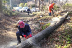 里山センターご近所の前から頼まれていた道路・畑に大きく張り出しているケヤキの伐倒作業を行った。人数が多かったので小一時間の作業で完了。
