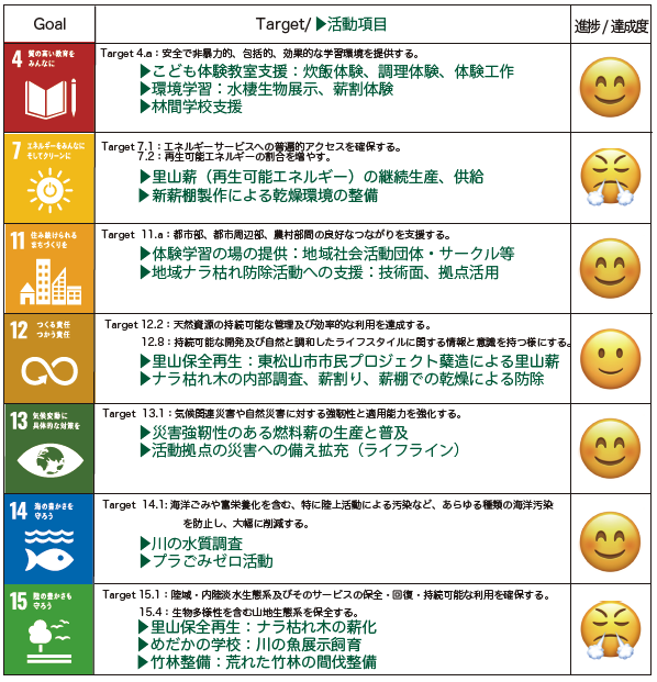 進捗/達成度につきましては、数値目標の設定が難しく、評価も定量的にできないため、フェイスマークで表示。